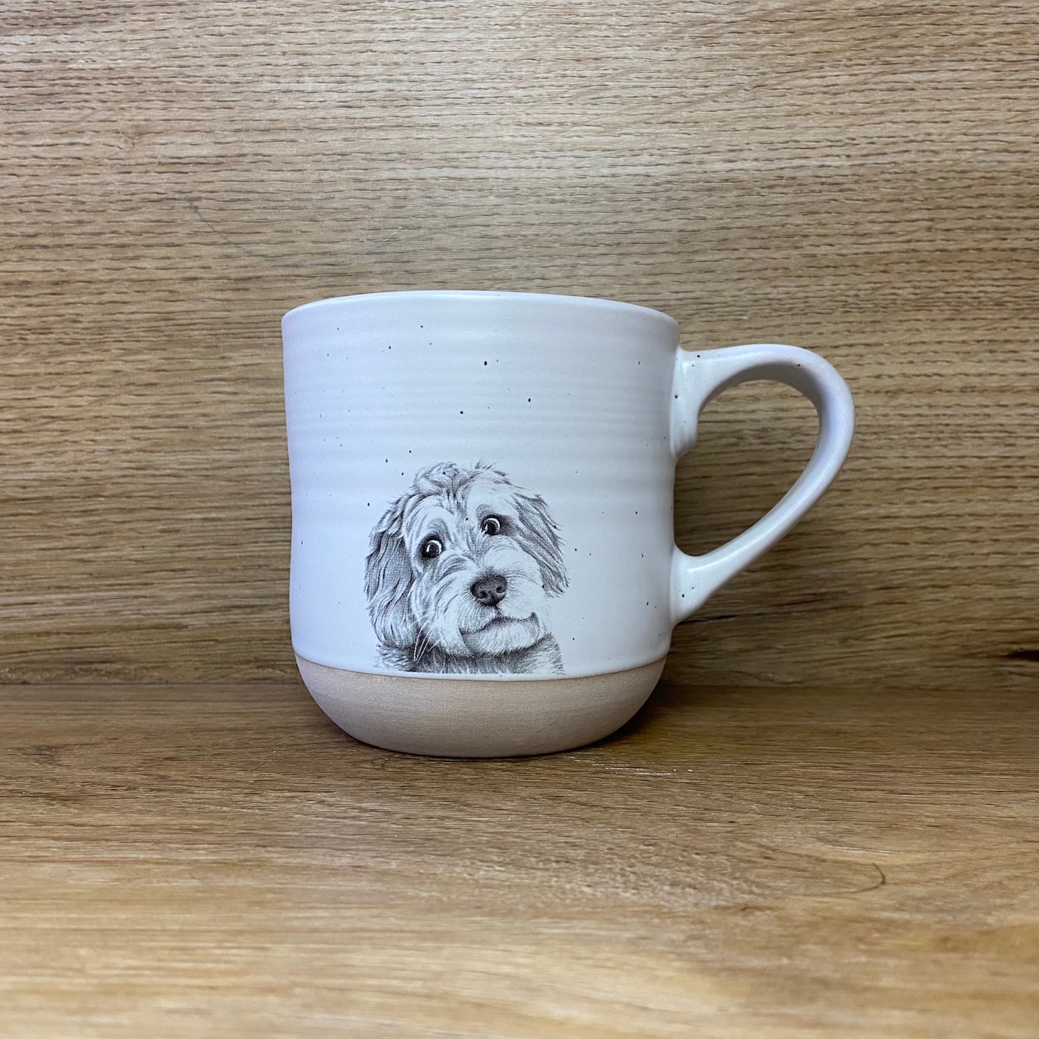 Contemporary two-tone stoneware mug, beautifully screen printed with an original hand drawn pencil design.