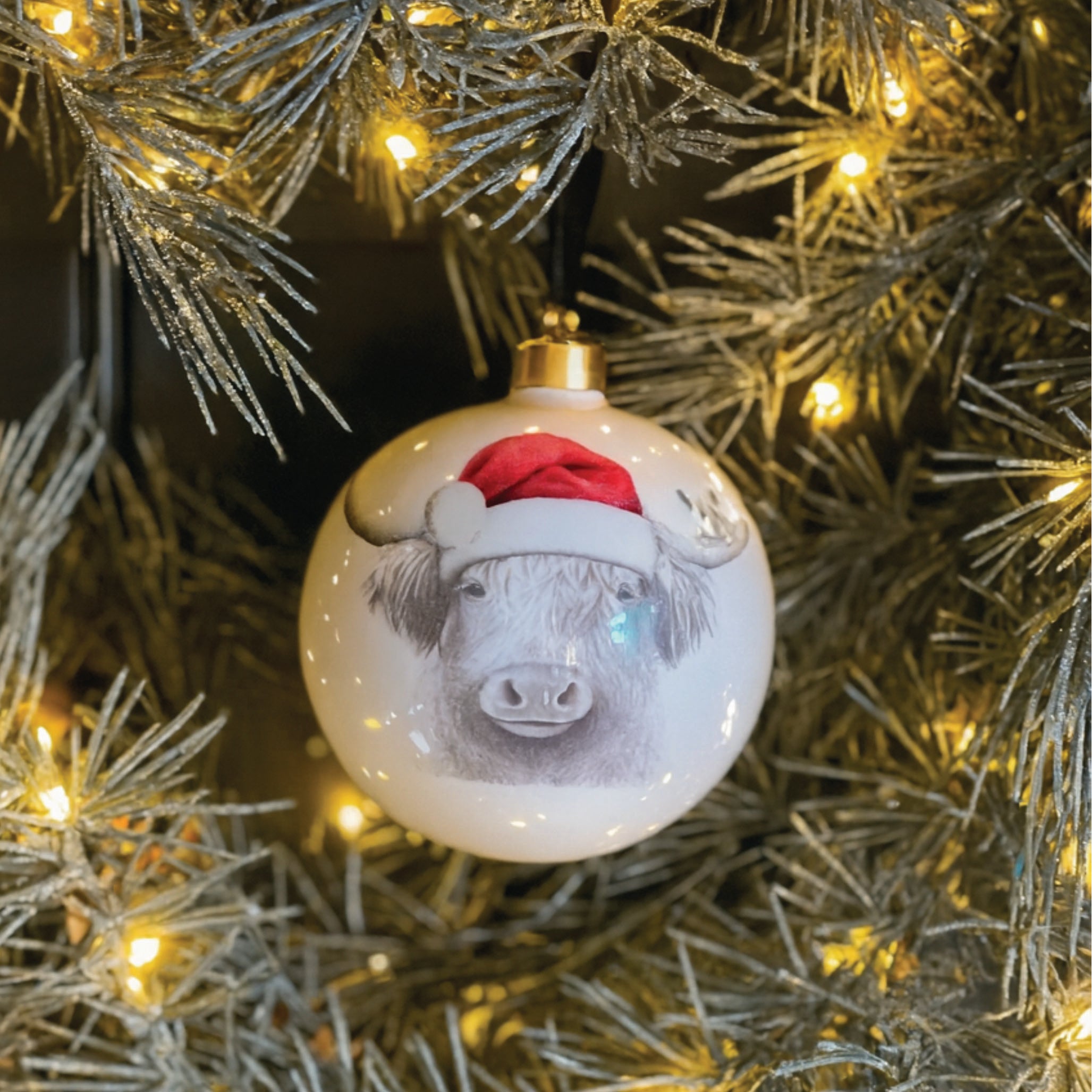 Christmas Bessie Cow Large Fine Bone China Bauble