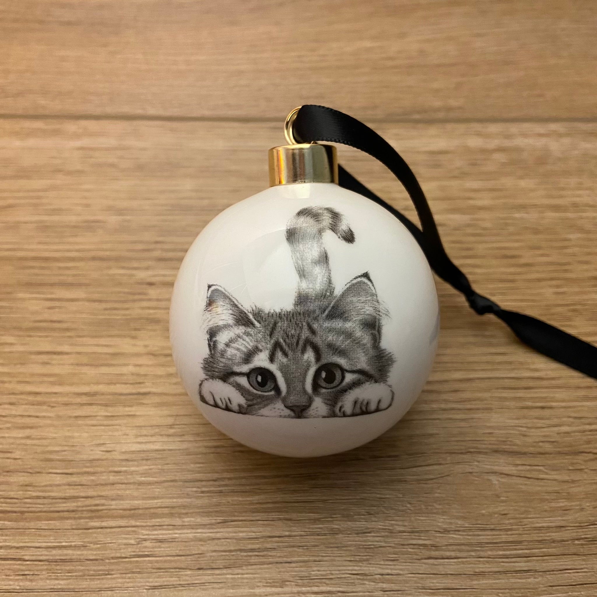 Beautiful & festive white Fine Bone China bauble with printed original pencil art character.