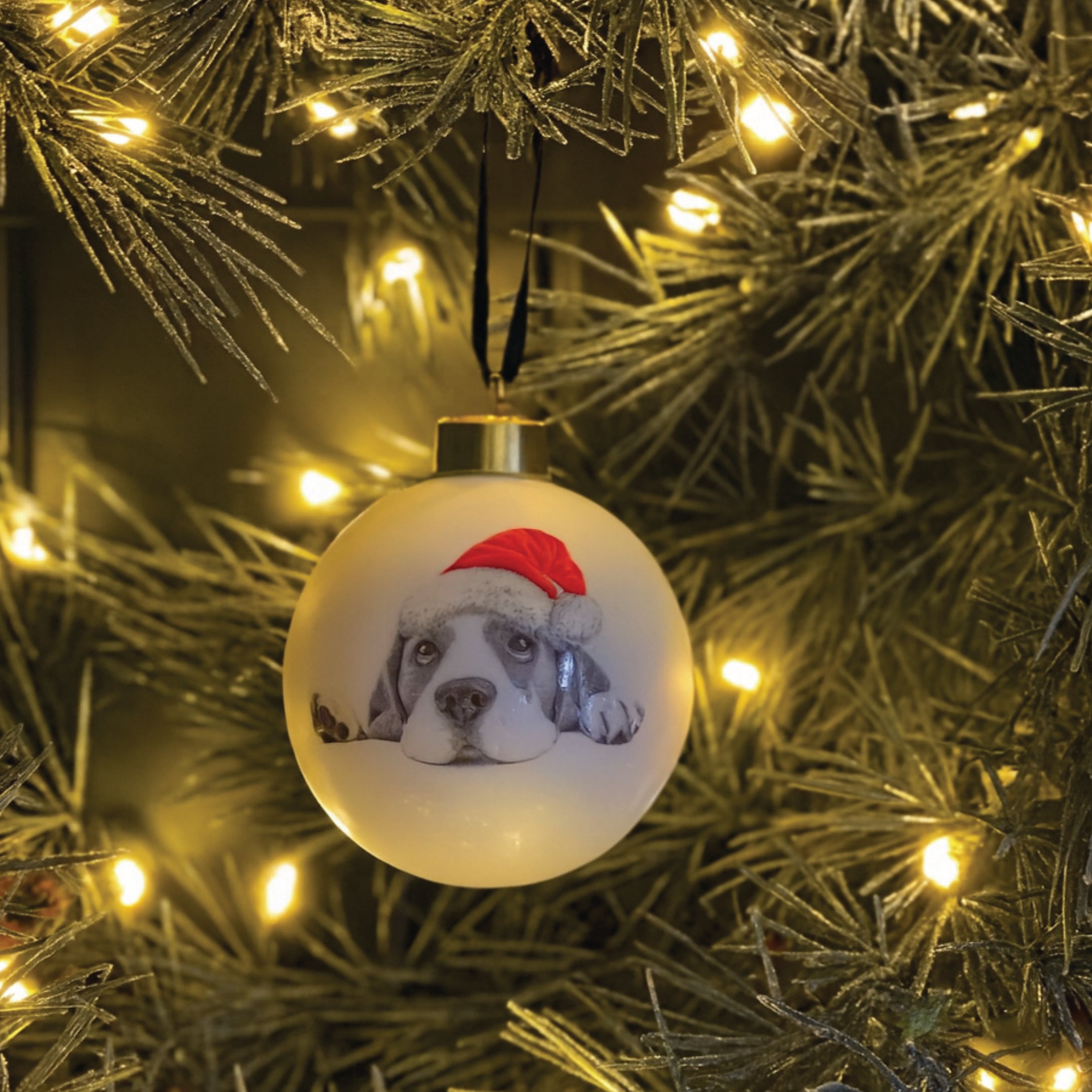 Christmas Bailey Beagle Fine Bone China Bauble