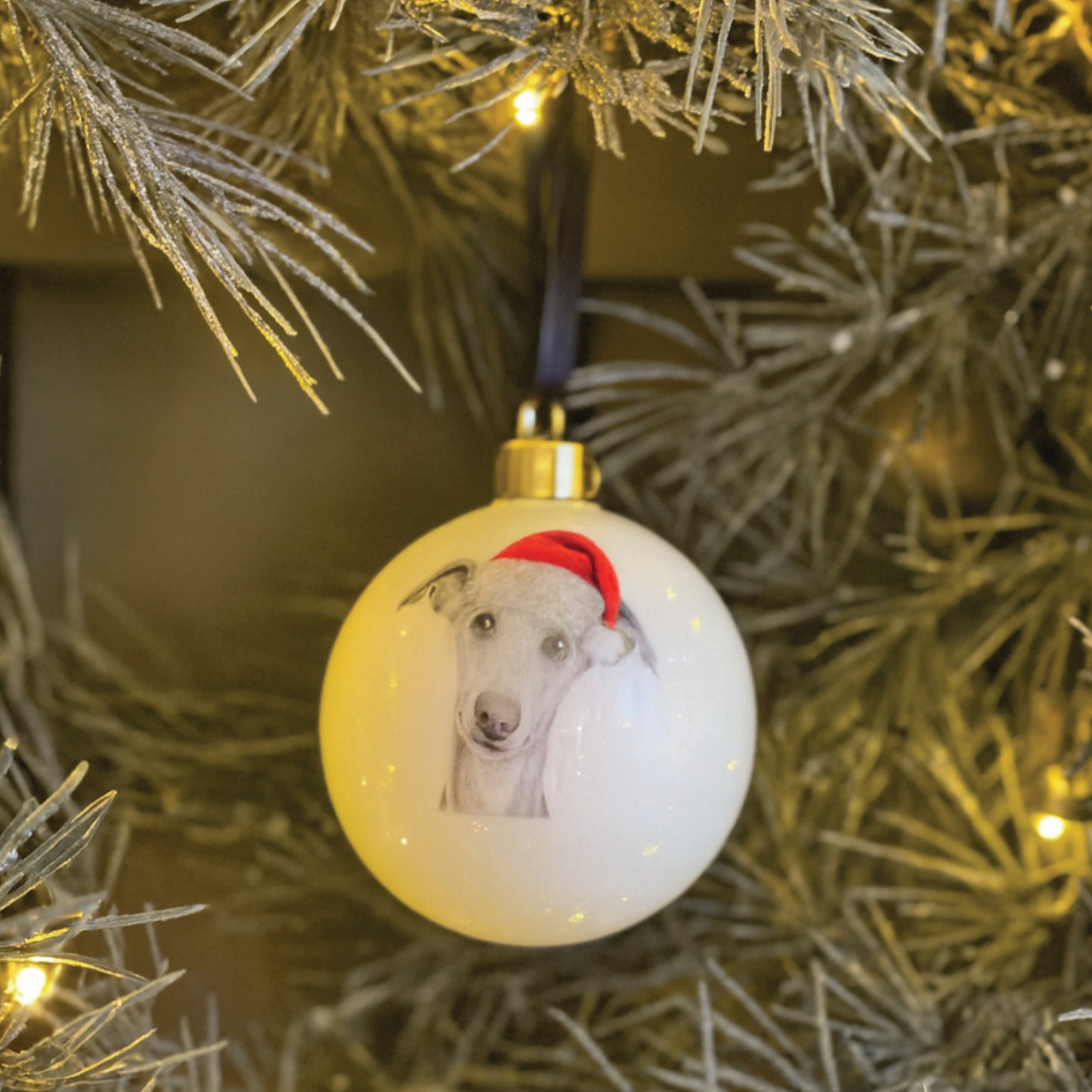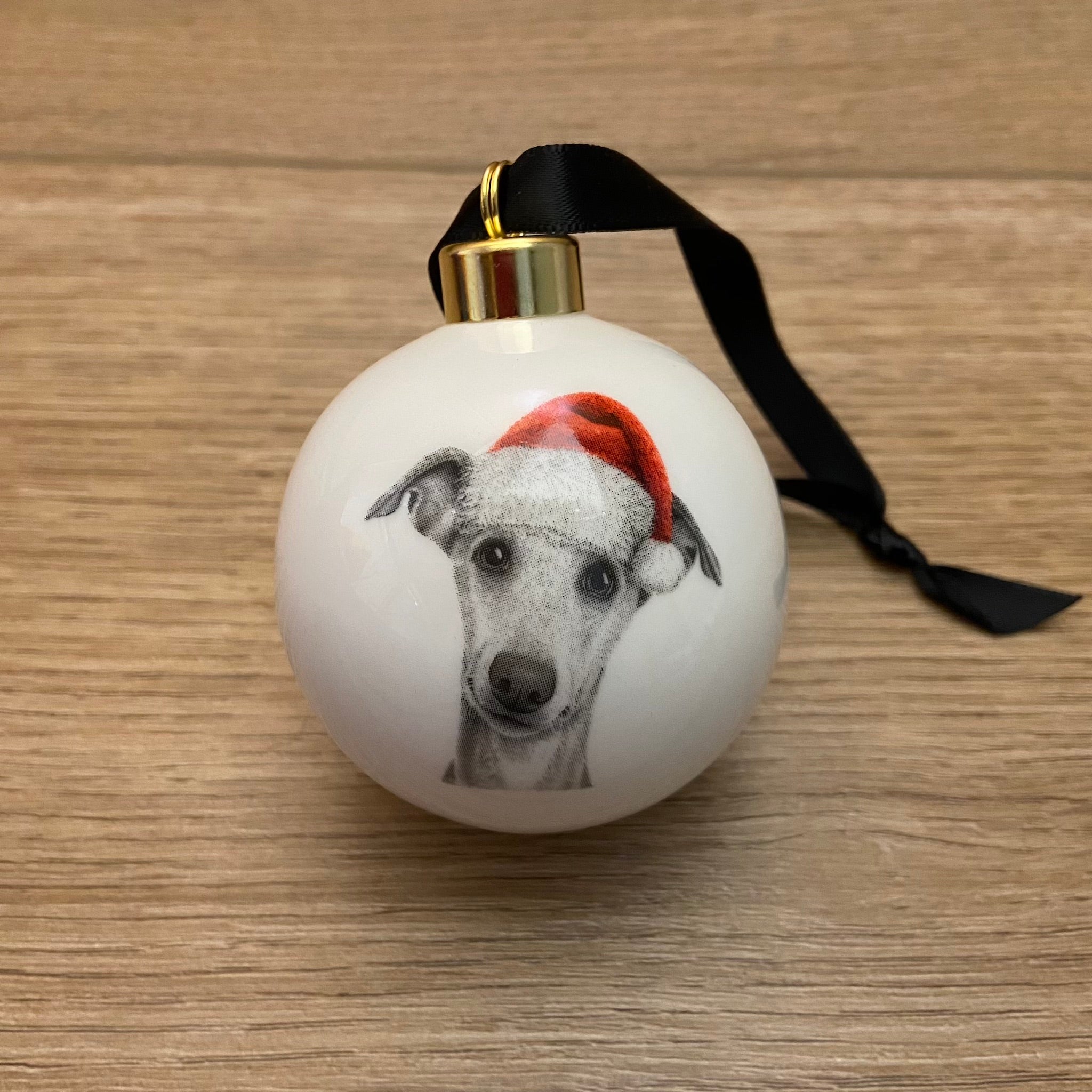 Beautiful & festive white Fine Bone China bauble with printed original pencil art character.
