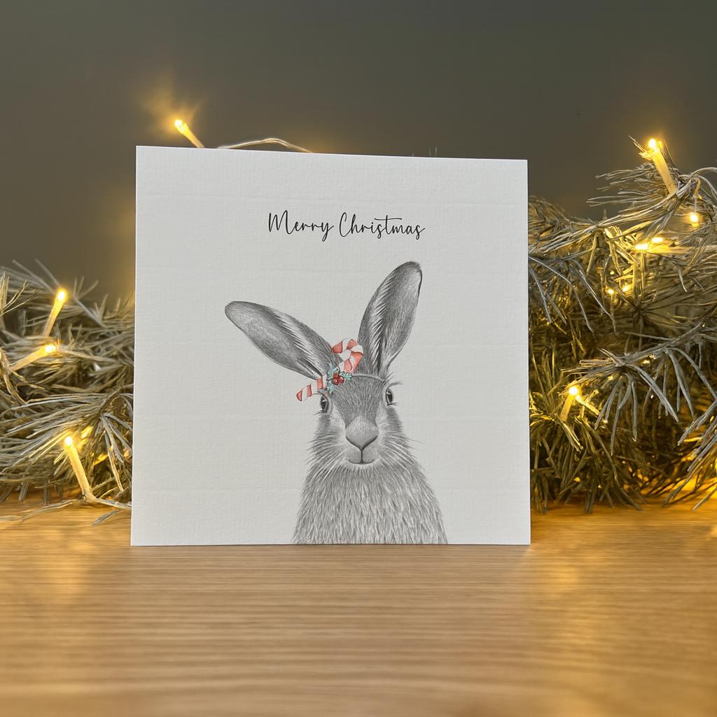 Harry Hare Pencil Illustrated Christmas Card