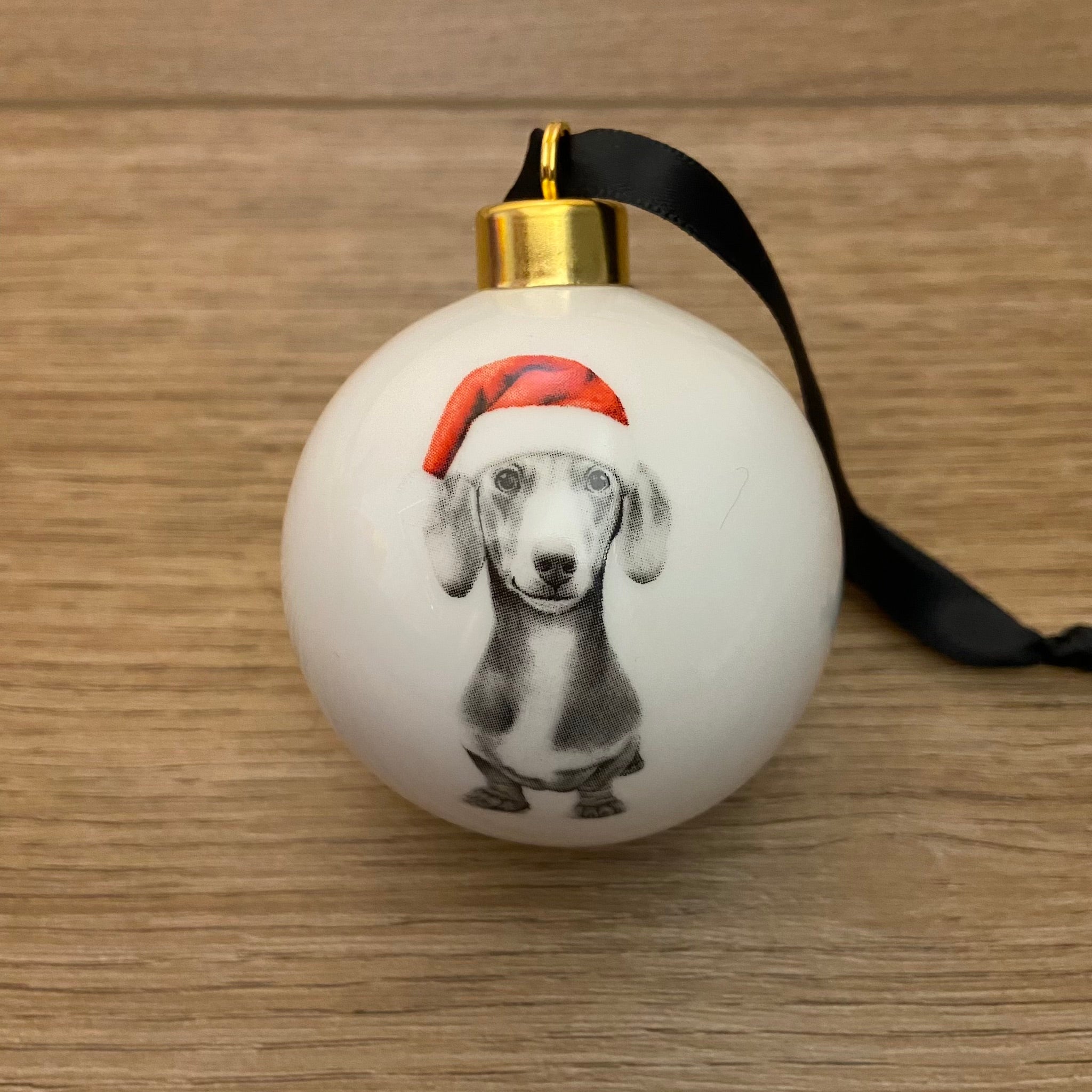 Christmas Sidney Sausage Dog Fine Bone China Bauble