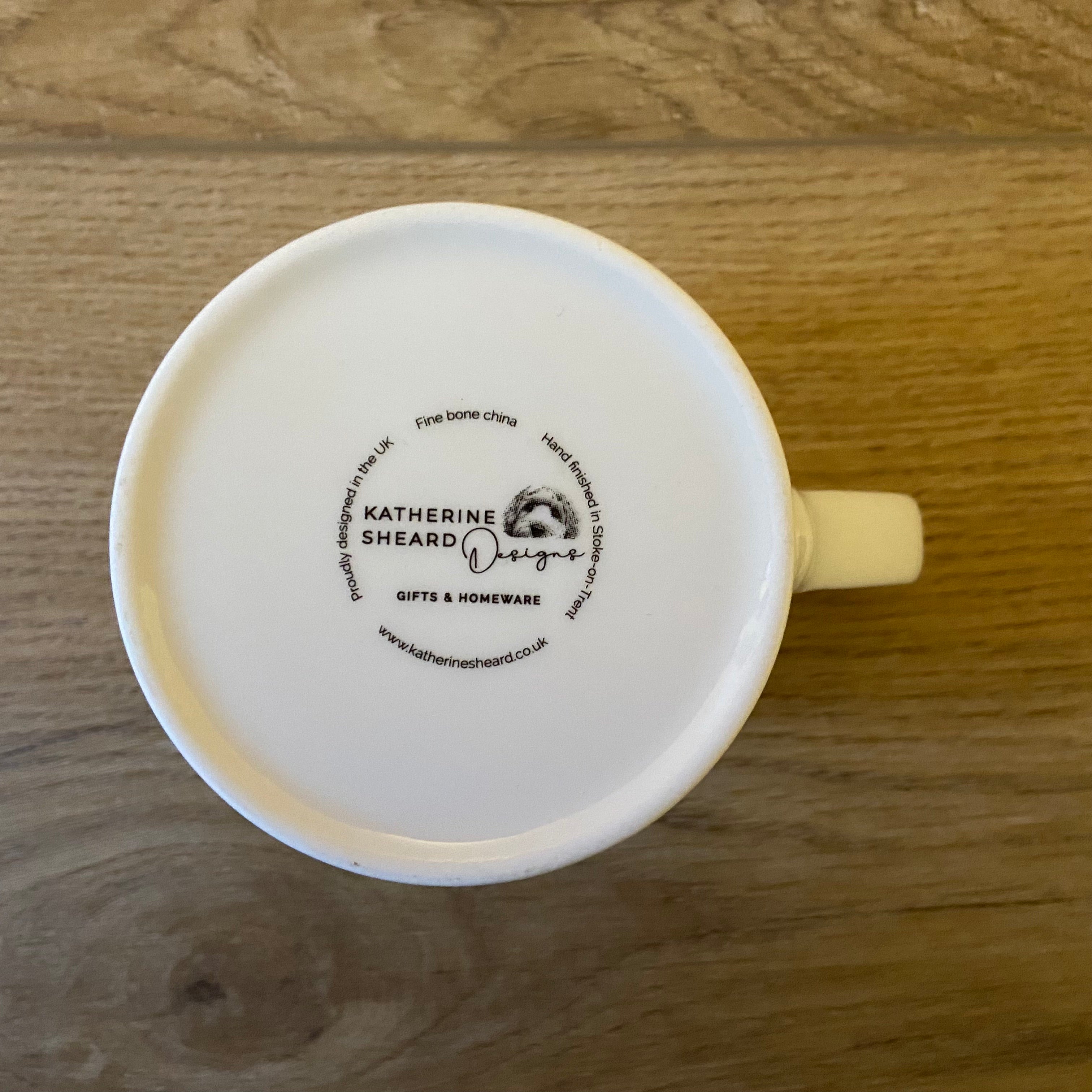 Fine Bone China mug, beautifully screen printed from original hand drawn pencil artwork. Designed to make you smile.